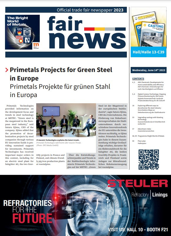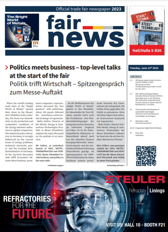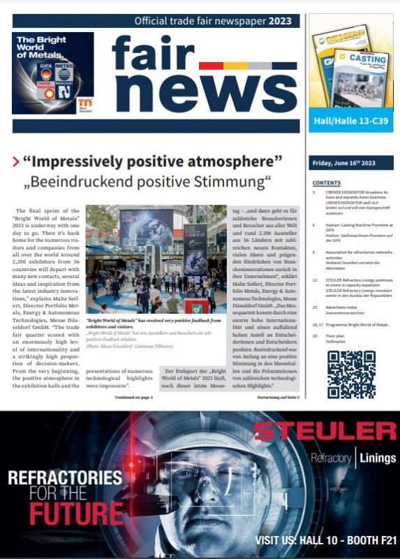 is the only official trade fair newspaper of the industry's leading trade fairs "The Bright World of Metals" and is published by the Düsseldorf publishing house DVS Media in cooperation with Messe Düsseldorf.