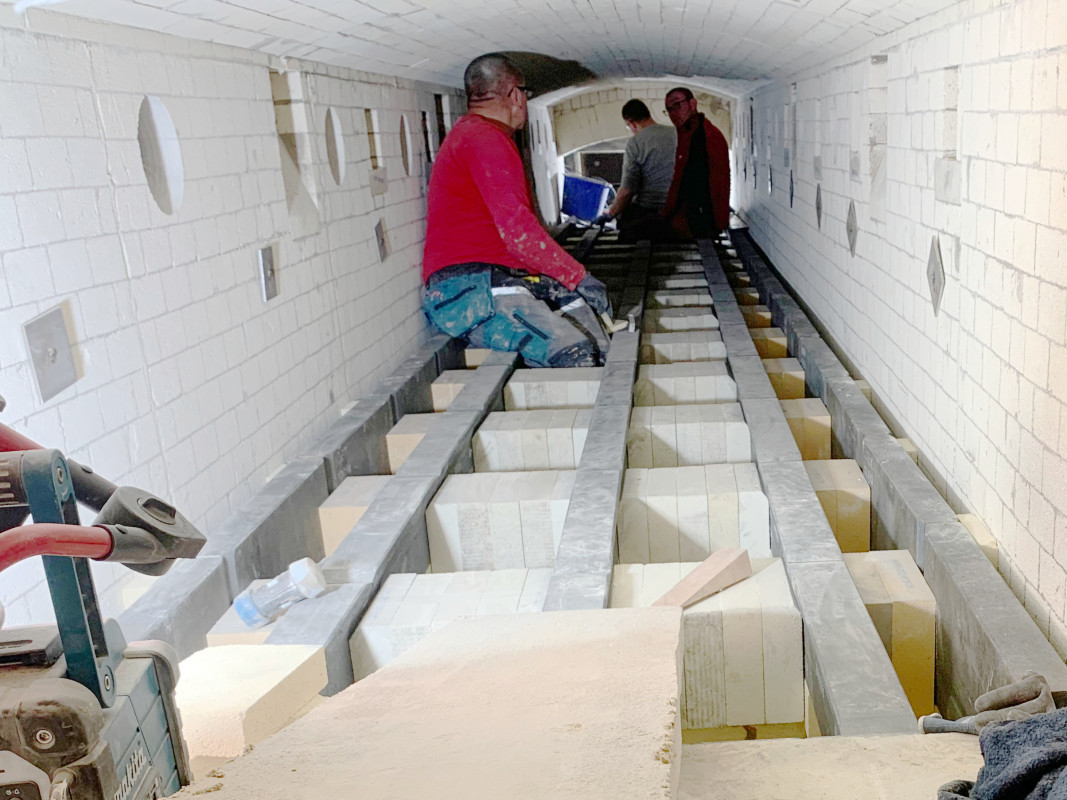 Anschließend erfolgte die neue Ausmauerung sowie die erneute Montage der Beheizungstechnik vor der anschließenden Testfahrt im Kaltbetrieb. Die Ausmauerung mit optimiertem Wandaufbau wurde mit einem entsprechend starken Serviceteam durchgeführt, das über 100 m3 Material "Stein auf Stein" verbaute. Insgesamt waren im Projektverlauf rund 20 Arbeitskräfte der verschiedenen Partner sowie die Projektleiter- und -koordinatoren seitens Aichelin Service und beim Kunden im Einsatz. Die letzten Arbeiten wurden im Dezember abgeschlossen. Die Abnahme der Anlagen durch den Kunden erfolgte nach erfolgreicher Wiederinbetriebnahme Ende Januar 2023.