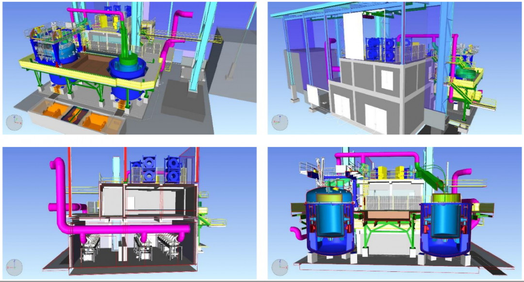 SMS liefert eine 120-Tonnen Twin-Tank-Vakuumentgasungsanlage mit schwenkbarem Deckel und mechanischen Vakuumpumpen. Die Probennahmen erfolgen mithilfe innovativer Robotertechnik. Der auf dem Deckel der Anlage installierte TS-Pro Sampler ermöglicht schnelle Probennahmen bei hoher Wiederholgenauigkeit. Das Einspulen von Legierungsdraht zum Feinen der Schmelze stellt sicher, dass die Schmelze am Ende der Behandlung – vor dem Einsatz in der Stranggießanlage – exakt die spezifizierte chemische Analyse aufweist. Hierbei ist ein genaues Timing wichtig. Daher wird die Anlage über ein Vakuumsystem verfügen, das ein schnelles und gleichmäßiges Abpumpen sowie stabile Prozessbedingungen unterhalb von 1 mbar sicherstellt. Für den Fall eines unerwarteten Überdrucks wird ein leistungsstarkes Überwachungs- und Kontrollsystem installiert. Zum Schutz der mechanischen Vakuumpumpen (hochpräzise Roots-Gebläse und Kompressoren) wird ein Baghouse-Filter in der Saugleitung zwischen dem Hauptventil und den Pumpeneinlässen installiert.