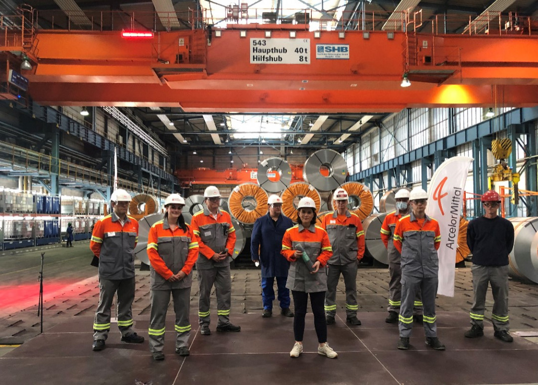 Klimaneutrale Stahlproduktion ist ein wichtiges Thema bei ArcelorMittal. In Deutschland treibt der weltweit führende Stahlhersteller mit der Strategie „Steel4Future“ die Transformation an seinen vier Produktionsstandorten in Bremen, Duisburg, Eisenhüttenstadt und Hamburg mit ehrgeizigen Initiativen voran. Während eines Besuchs bei ArcelorMittal Eisenhüttenstadt machte sich die Grünen-Vorsitzende und Kanzlerkandidatin Annalena Baerbock vor Ort ein Bild von den Transformationsplänen für den Industriestandort in Ostbrandenburg.