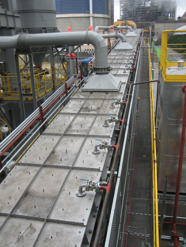 Bucket Apron Conveyor in fluidised bed process, conveying height 110 m