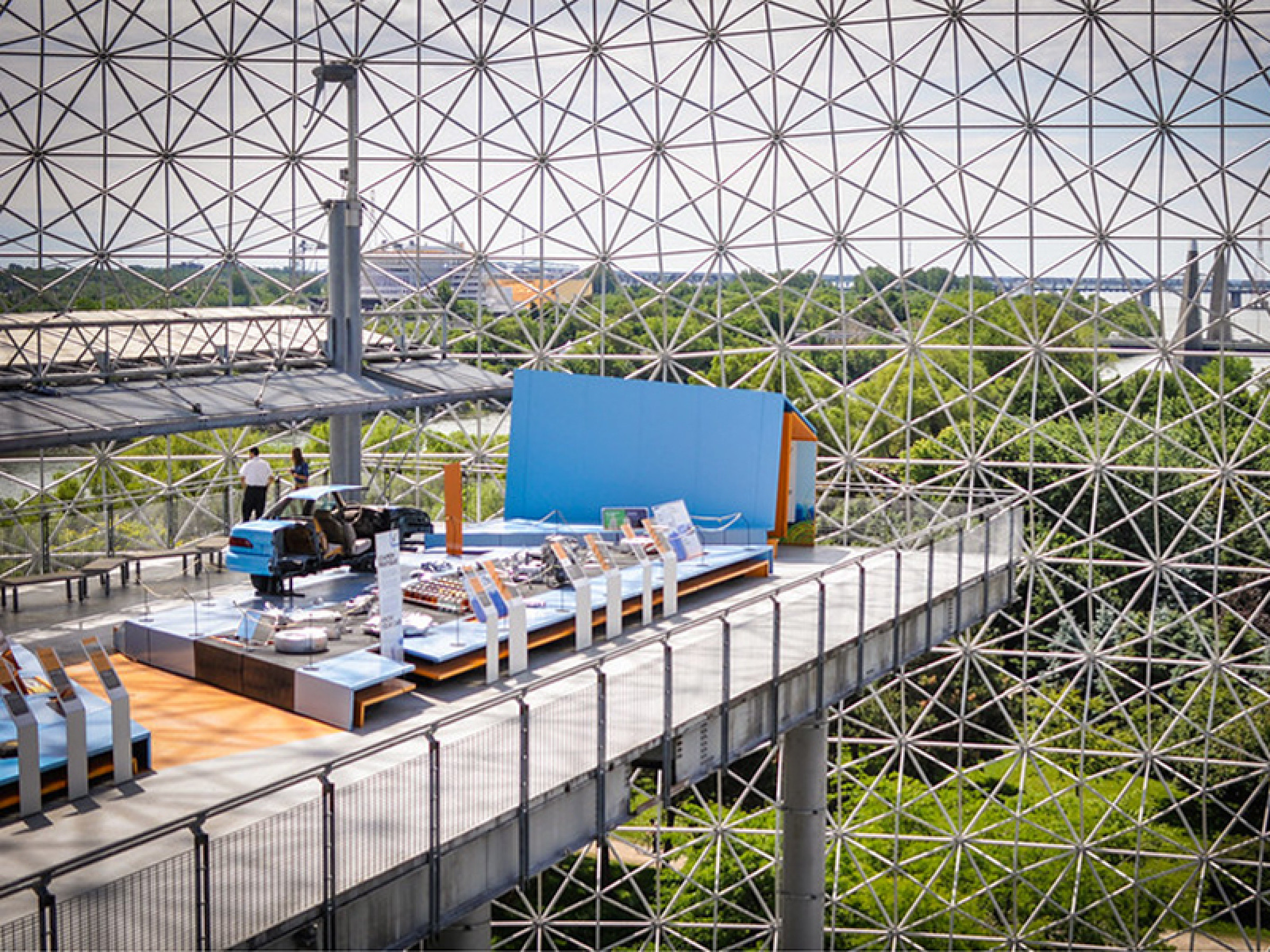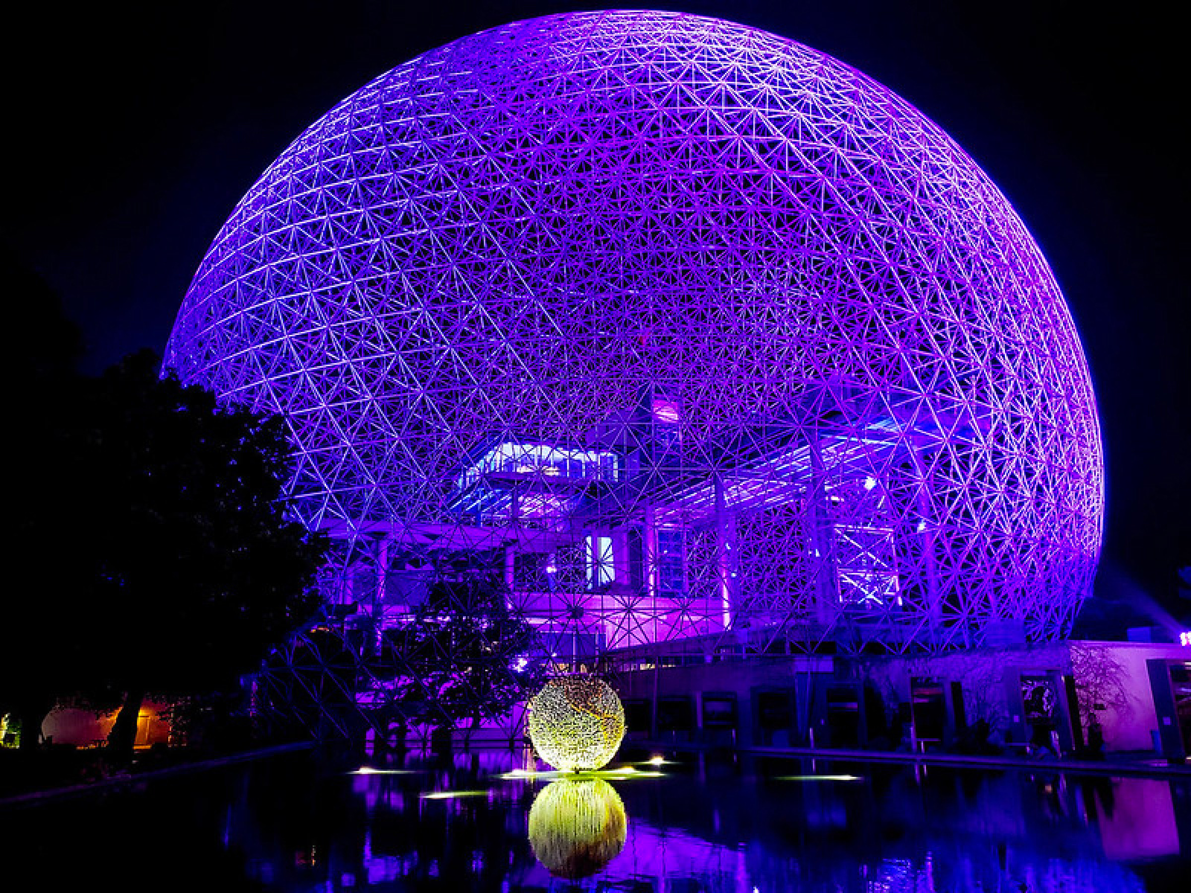 Sphärische Kuppeln mit einer Gitterschale aus Dreiecken werden als geodätische Kuppeln bezeichnet. Zu einer dieser Konstruktionen gehört die Biosphère, ein Wasser- und Umweltmuseum in der kanadischen Stadt Montreal. Der Durchmesser der Kugel ist 76 m, ihre Höhe beträgt 62 m. Ursprünglich wurde sie für die Expo 67 gebaut und besaß eine transparente Außenschale aus Acryl, die jedoch während Renovierungsarbeiten 1976 durch ein Feuer zerstört wurde. Das Stahlskelett blieb erhalten und seit 1995 ist darin das interaktive Museum untergebracht.