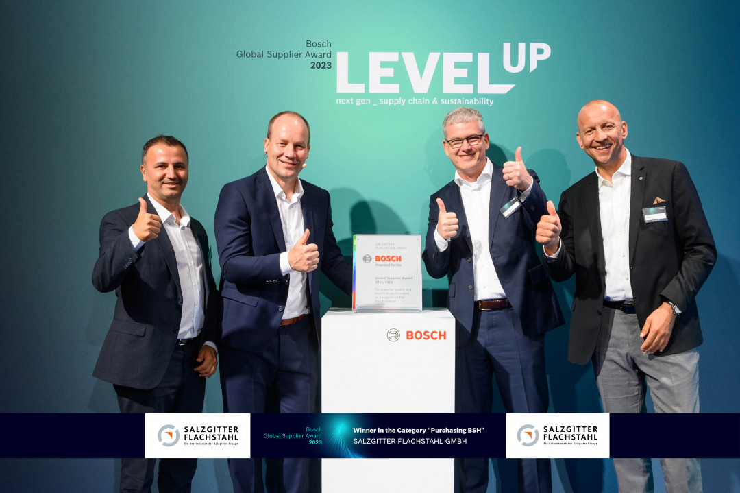 Die Salzgitter AG zählt zu den weltweit besten Lieferanten von Bosch und erhielt deshalb am 14. Juli in einer feierlichen Zeremonie vom Technologie- und Dienstleistungsunternehmen die Auszeichnung „Bosch Global Supplier Award“.