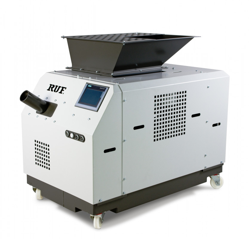 Die Fachbesucher bekommen neben einer RUF 4 auch die kleinste Anlage RUF Formica zu sehen. Mit integriertem Schaltschrank liegen ihre Abmaße bei lediglich 1,3 m Länge, 0,8 m Breite und 0,9 m Höhe. Dennoch erreicht sie – abhängig von Material- und Spanart – einen Durchsatz von bis zu 100 kg/Std und Volumenreduzierungen von 1:10 bis zu 1:15 bei Aluminiumspänen sowie 1:5 bis 1:10 bei Stahlspänen. Zudem trennt die Maschine anhaftende Kühlflüssigkeiten beim Pressvorgang ab, fängt sie in einer Wanne auf und befördert sie mit der integrierten Kühlschmierstoffpumpe zu externen Behältern.