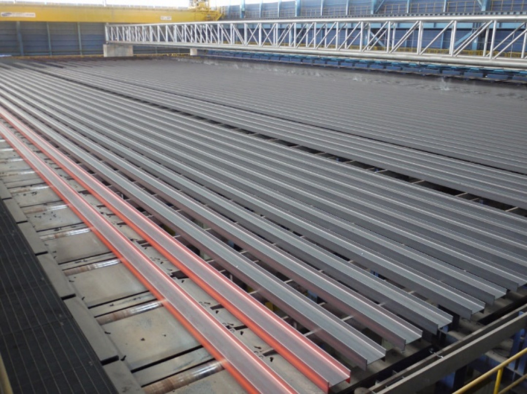 Das mit einem neuen Aerosolkühlsystem ausgestattete Kühlbett sorgt für eine effektivere Abkühlung der warmgewalzten Erzeugnisse und so für eine Produktivitätssteigerung. Zusätzlich wird in das Kühlbett eine neue Hochstell- und Umlegevorrichtung für I- und H-Träger integriert, die den Kühlbettdurchsatz für diese Produkte weiter erhöht. So ist Celsa Barcelona dank des Umbaus in der Lage, HEA und HEB bis 600 herzustellen und dadurch das Portfolio zu erweitern sowie die Effizienz der Produktion zu steigern.