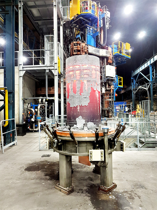 Diese einzigartige ESU-Anlage besteht aus einer zentralen Mittelstation für Gleittiegelbetrieb mit Elektrodenwechseltechnologie und einer Außenstation für den Standtiegelbetrieb mit einer Elektrode. Die hohe Produktivität dieser Anlage wird durch die Ausnutzung von zwei Ofenköpfen und drei Schmelzstationen in der Erweiterungsphase sichergestellt. Diese neue ESU-Anlage ist für den Umschmelzprozess von Blöcken mit einem Durchmesser bis zu 1250mm und einem Gewicht von maximal 25t ausgelegt.