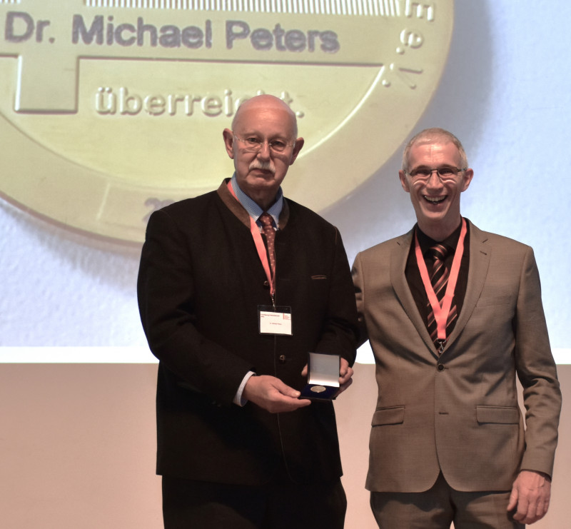 Herr Dr. Michael Peters, langjähriger ehemaliger Hochofen-Chef der thyssenkrupp Steel Europe, erhielt die Kokermedaille des VDKF aus den Händen von Herrn Dipl.-Ing. Peter Liszio. Herr Dr. Peters wurde für seinen Einsatz um die Weiterentwicklung der Koksqualität für den Einsatz in Großhochöfen, seinen Support beim Ringen um den Neubau der Kokerei Schwelgern, sowie sein Lebenswerk als Hochöfner und Freund der Kokereitechnik, geehrt.