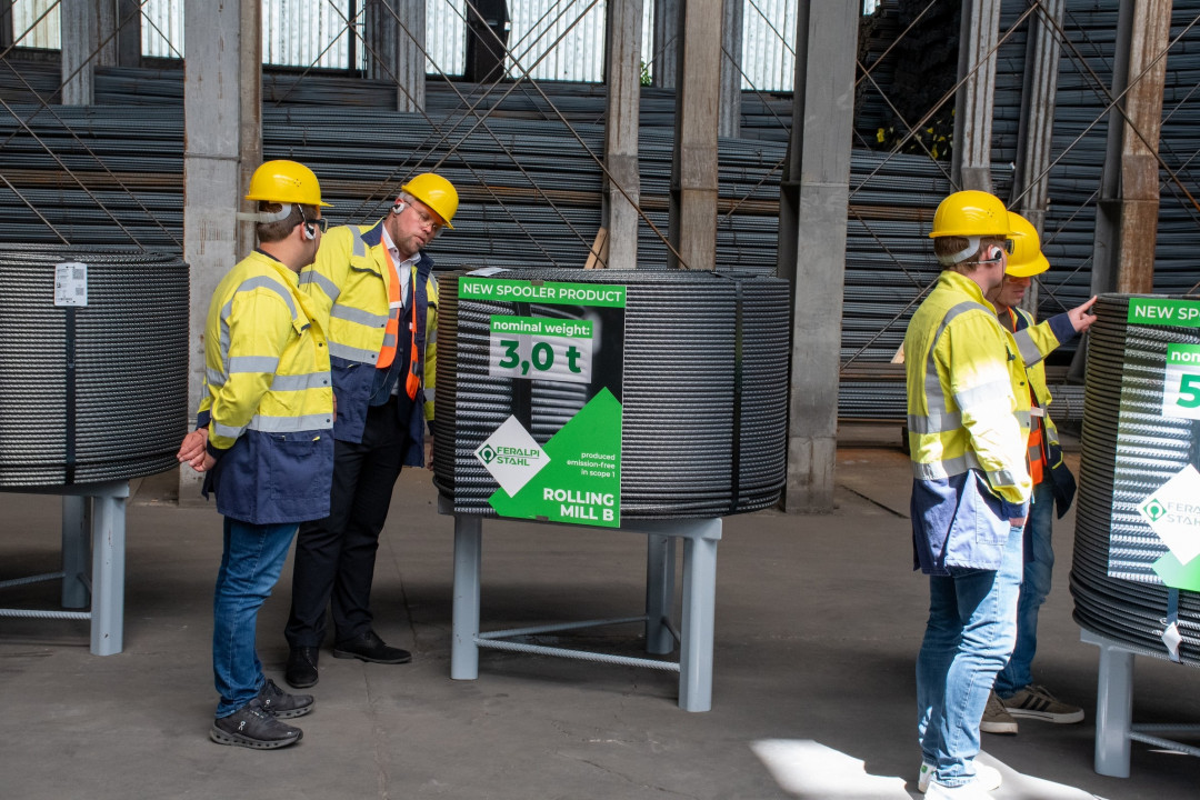 Mit dem neuen Spooler-Coil stellte Feralpi Stahl beim Spooler Day erstmals eine Produktneuheit vor, die die Stahlproduktion und Weiterverarbeitung in der Bauindustrie neu ausrichten soll. In einem exklusiven Fachprogramm mit geladenen Gästen aus Wirtschaft und Forschung wurde das Produkt präsentiert – gefertigt im deutschlandweit ersten Scope-1-emissionsfreien Walzwerk, das kürzlich am Standort Riesa in Betrieb genommen wurde.