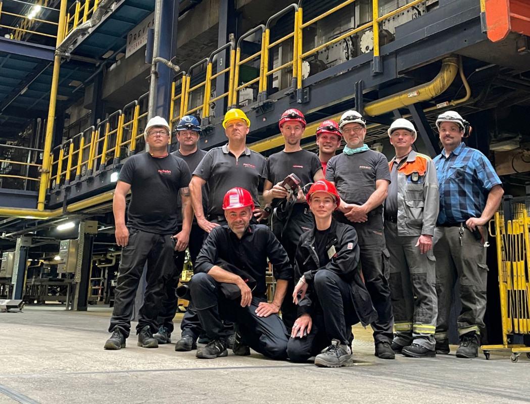 Der Zeitplan war herausfordernd: Die Umstellung der Brennersysteme musste in nur zwei Wochen und während des laufenden Betriebs der Anlagen erfolgen. Danach war noch eine weitere Woche zur Produktionsbegleitung und -optimierung eingeplant. Dabei musste bei der Umstellung und Anpassung der Brenner im laufenden Betrieb eine konstante Arbeitstemperatur sichergestellt sein, um eine gleichbleibend hohe Produktqualität zu gewährleisten. Vor Ort im Einsatz waren dafür bis zu fünf gemischte Teams mit insgesamt 10 Mitarbeitern von AICHELIN Service und NOXMAT, ergänzt durch mehrere Mitarbeiter von thyssenkrupp Rasselstein zur permanenten Temperaturüberwachung in der Messwarte. Die Koordination der Teams über mehrere Etagen der Anlagen und für eine reibungslose Kommunikation untereinander erfolgte per Funkverbindung durch die Serviceeinsatzleiter von AICHELIN Service und NOXMAT sowie von thyssenkrupp Rasselstein aus der Messwarte.