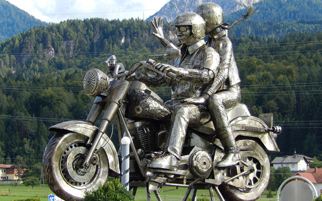 Harley-Davidson Fat Boy: Das Harleymonument wurde zum 110-jährigen Jubiläum von Harley auf dem Kreisverkehr in Faak Am See (Kärnten) errichtet. Der Ort ist bekannt für seine jährliche European Bike Week, zu der Zigtausende Motorradfans aus aller Welt pilgern.