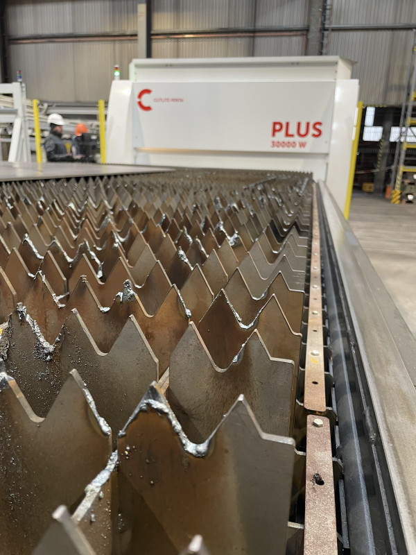 Für die Kunden und Partner von Kloeckner Metals Germany bringt die neue Anlage einen echten Mehrwert, denn diese ermöglicht noch mehr Leistung, Effizienz und Präzision. Insbesondere optimiert die Laseranlage die Maßgenauigkeit beim Schneiden von Stahl und Edelstahl zum Beispiel für den Maschinenbau oder die Fahrzeug- und Landmaschinenindustrie und erweitert die Bearbeitungsmöglichkeiten für Bleche, Metall- und Stahlplatten, die sich jetzt nicht nur konturengenau schneiden, sondern auch in der Tiefe des Schnitts variabel gestalten lassen.