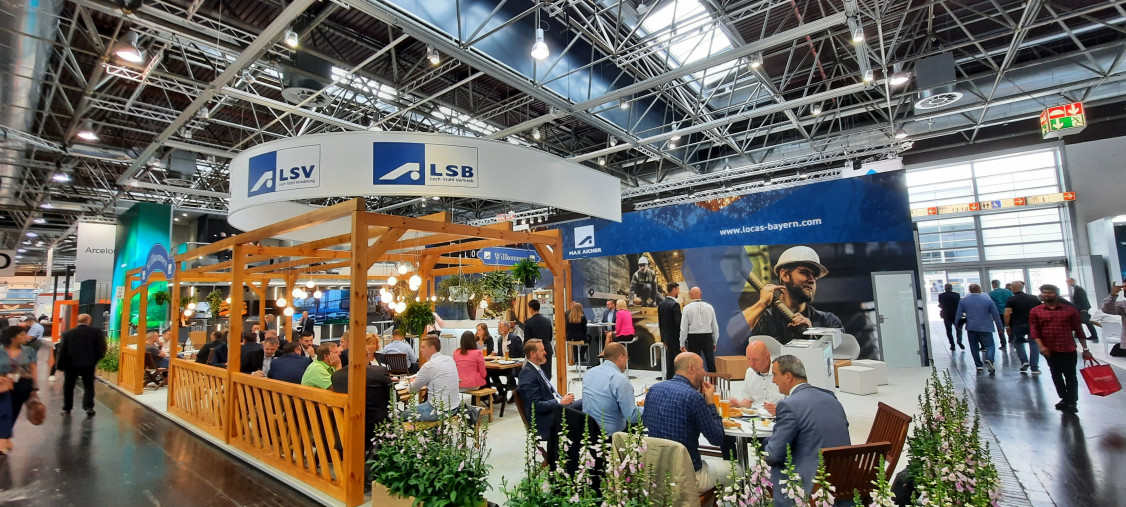 Auch die Stahlunternehmen der Max Aicher Stiftung präsentierten sich auf der Messe mit einem komplett überarbeiteten Standkonzept. Dabei wurde nicht nur auf die Darstellung der qualitativ hochwertigen Produkte und die vielfältigen Anwendungsmöglichkeiten für ihre Kunden geachtet. Ebenso standen die Themen Kreislaufwirtschaft und Nachhaltigkeit im Fokus und wurden optisch durch die Motive der LOCAS Kampagne klar positioniert. Abgerundet wurde der Stand mit einem gemütlichen Biergarten-Flair durch Pflanzen und Holzelemente, um die Herkunft und Tradition des „low-carb Stahls aus Bayern“ zu unterstreichen.