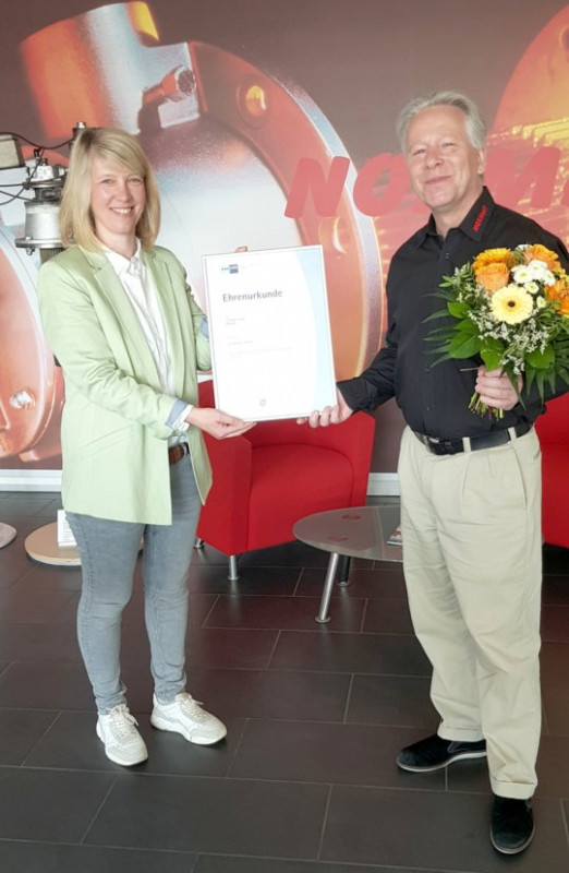 Anfang Mai erhielt NOXMAT die IHK-Ehrenurkunde zum 30-jährigen Firmenjubiläum. Diese wurde Matthias Wolf überreicht durch Dr. Cindy Krause, Geschäftsführerin der Industrie- und Handelskammer Chemnitz - Regionalkammer Mittelsachsen. Gemeinsam mit ihrer Kollegin Claudia Liebe erhielt Frau Dr. Krause einen Überblick über das Produkt- und Servicespektrum von NOXMAT bei einer Führung durch das Oederaner Werk.