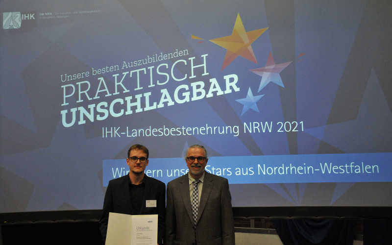 Jedes Jahr ehren die 16 Industrie- und Handelskammern in Nordrhein-Westfalen die zwei landesweit besten Absolventinnen und Absolventen in ihren jeweiligen Ausbildungsberufen.