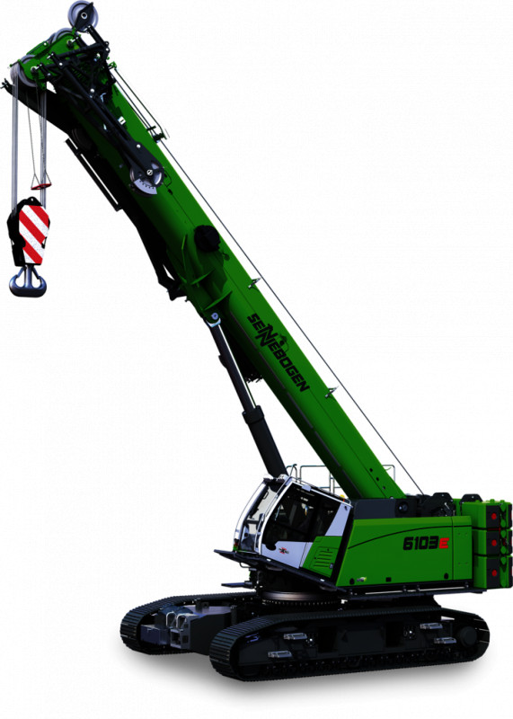 Wie alle Raupentelekrane des Unternehmens erlaubt auch die 100 t Maschine das Arbeiten in unwegsamem Gelände. Sowohl eine aufwändige Positionierung oder das Abstützen der Maschine können dank des robusten, teleskopierbaren Raupenunterwagens mit maximal 4,20 m Spurbreite entfallen. Auch während des Kranbetriebs steht der Raupenunterwagen sicher und stabil. Die besonders robuste Konzeption der Gesamtmaschine, wie auch des Auslegers, macht sich vor allem beim Arbeiten mit bis vier Grad Schrägstellung und hohen Traglasten bemerkbar. Hier setzt der 6103 E ein gewichtiges Zeichen in seiner Leistungsklasse. Als Pick and Carry Kran lässt sich der Raupentelekran auch mit bis zu 100 % Last am Haken verfahren und bietet damit großzügige Einsatzmöglichkeiten insbesondere in der Fertigteil- und Komponentenmontage und auf weitläufigen Baustellen.