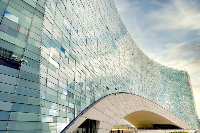 Die verglaste Brücke des 7-stöckigen Bauwerks ist 137 Meter lang und 37 Meter hoch und verbindet Natur mit Technologie: einerseits Grünanlagen, andererseits die über die gesamte Fläche verteilte LED-Beleuchtung, ähnlich den sich am Himmel bewegenden Sternen. Die Fassade des Gebäudes ist mit einer Matrix aus Glaspixeln verkleidet, welche verschiedene Effekte – mal transparent, mal undurchsichtig – ergeben. Das Dach ist mit Photovoltaikmodulen und einer Regenwasserauffanganlage ausgestattet.