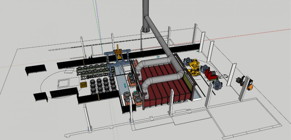 Der Lieferumfang umfasst Kettenförderer, Manipulatoren, Hochtemperatur-Durchschuböfen, Transportsystem der Durchschubwagen, Kipptisch, Sicherheitstechnik, Automatisierung und Visualisierung.