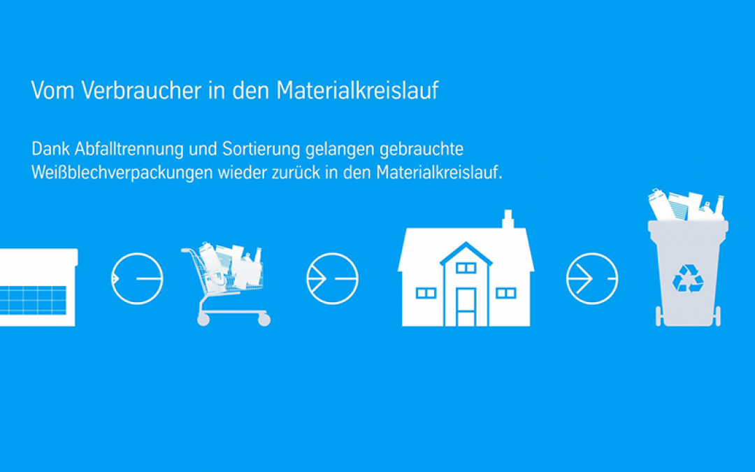 Eine neue Animation der thyssenkrupp Rasselstein GmbH veranschaulicht die Fähigkeit von Verpackungsstahl, immer und immer wieder ohne Minderung der Qualität recycelt zu werden. Dank seiner Eigenschaften verbleibt Stahl in aufeinanderfolgenden Nutzungs- und Recyclingzyklen in einem geschlossenen Kreislauf. Die Dosen von heute sind daher morgen zum Beispiel eine Waschmaschine oder übermorgen ein Autoteil.