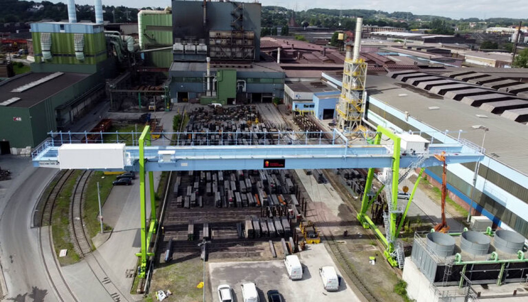 Der generalüberholte Portalkran hat eine Trag-fähigkeit von 20 Tonnen und eine Spannweite von 41 Metern und wird am DEW-Standort in Witten zukünftig Stahlblöcke aus Block- und Strangguss mittels einer speziellen Greifzange umschlagen.