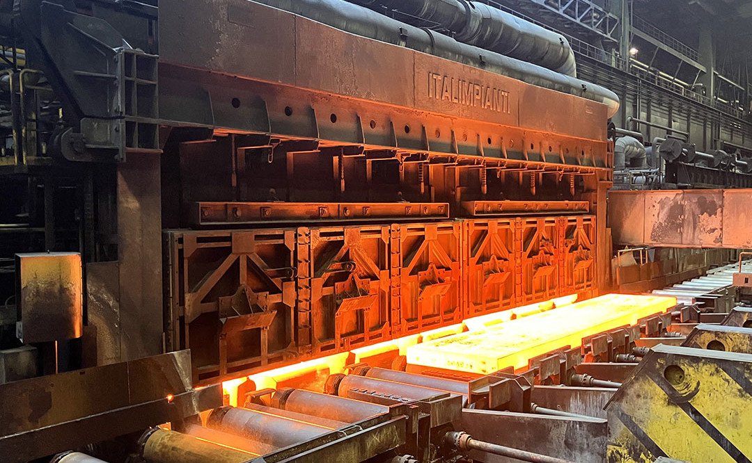 In diesen speziellen Öfen in der Warmbreitbandstraße werden so genannte Brammen auf bis zu 1.300 Grad Celsius erwärmt. Diese Blöcke aus gegossenem Stahl sind das Vormaterial, das anschließend zu Stahlbändern (Coils) ausgewalzt wird. Die Firma Tenova Italimpianti wurde mit der Realisierung des Hubbalkenofens beauftragt.