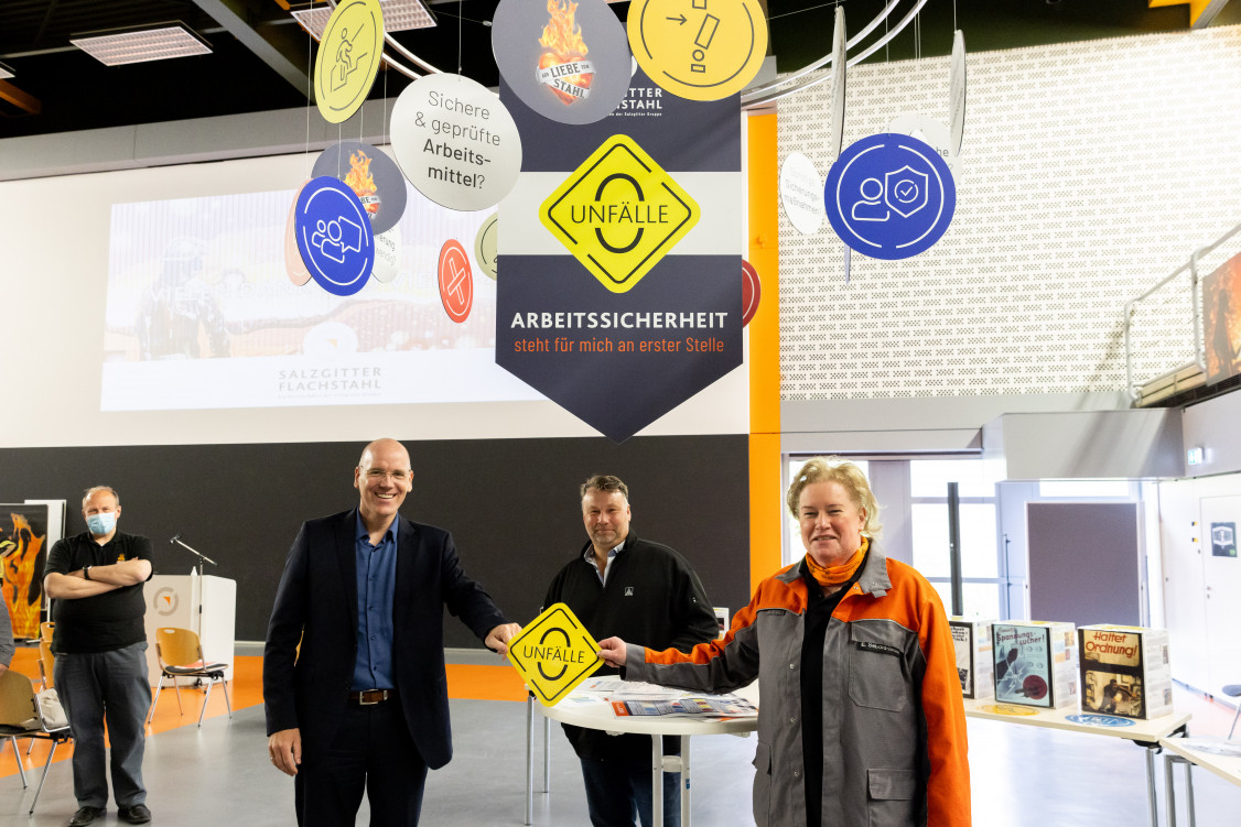 Die Salzgitter Flachstahl GmbH veranstaltet bis zum 12. Mai 2022 für ihre gesamte Belegschaft 13tägige „Praxistage Arbeits- und Gesundheitsschutz“ mit einem umfangreichen Programm. Von 6 Uhr morgens bis 2 Uhr in der Nacht durchlaufen die Gruppen im vierstündigen Rhythmus verschiedene Stationen, unter anderem zu den Themen: Gute-Praxis-Beispiele „Wir arbeiten sicher“, Arbeitsschutz, Brandschutz und Gesundheitsvorsorge.