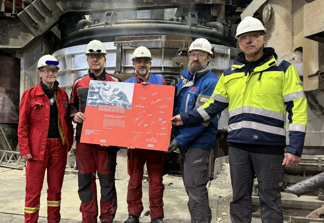 Für die KSK begann das neue Jahr mit einem gelungenen Abschluss. Gemeinsam mit den Schmiedewerken Gröditz konnte der neue, wassergekühlte Ofendeckel in Rohrkonstruktion, inklusive Staubkammer und Rückkühlkreislauf erfolgreich in Betrieb genommen werden.