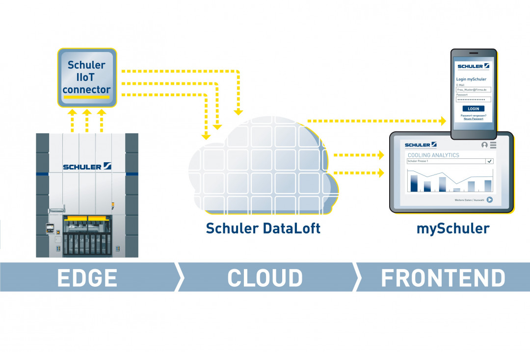 Auf diese Weise können mögliche Abweichungen früh erkannt und schnell behoben werden. Schuler arbeitet intensiv an zusätzlichen Applikationen zur Erweiterung des Systems. Der IIoT-Connector vor Ort an der Servopresse erlaubt die Kommunikation der Anlagensteuerung mit dem geschützten Rechenzentrum von Schuler, das die Maschinen- und Prozessdaten verwaltet, auswertet und grafisch aufbereitet. Darüber hinaus finden Nutzer auf dem „mySchuler“-Portal die Bedienungs- und Wartungsanleitung ihrer Maschine, die technischen Daten und Abmessungen, die aktuellen Ansprechpartner in Vertrieb und Service sowie Neuigkeiten zu Schuler und seinen Produkten.