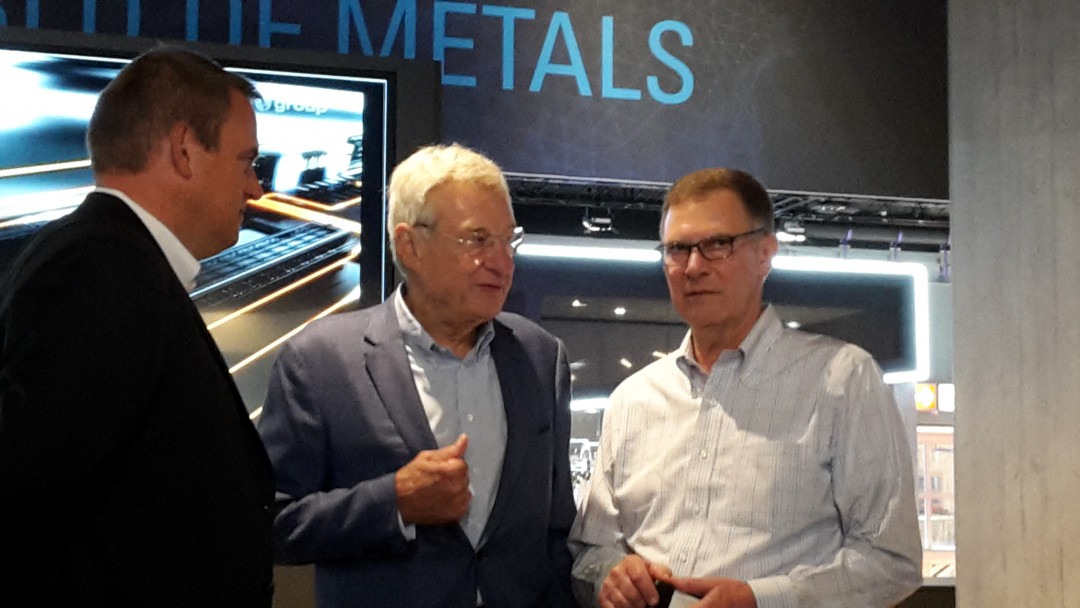 David Stickler, CEO von Big River Steel (BRS), war am Donnerstag, dem dritten Tag der METEC, zu Besuch bei der SMS group am Messestand. Gemeinsam mit Burkhard Dahmen, dem Vorsitzenden der Geschäftsführung der SMS group, stellte er in einem Gespräch auf der METEC heraus, wie erfolgreich das Werk in Osceola, US-Bundesstaat Arkansas, von Beginn der Stahlherstellung im Januar 2017 an produziert. Auch für die vereinbarte zweite Ausbaustufe wird die SMS group die mechanische Ausrüstung, die Elektrik und Automation sowie die Digitalisierungstechnik an BRS liefern. Die Erweiterung wird die Jahresproduktion des Werkes auf deutlich mehr als 3 Mio. t Stahl steigern.
