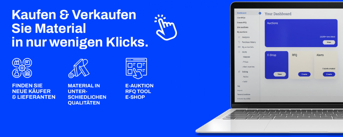 Als Nutzer von Vanilla Steel profitieren Sie von drei verschiedenen Methoden, um Materialien zu kaufen und zu verkaufen. Die erste ist die E-Auktion. Diese wird überwiegend für überschüssige Materialien verwendet. Durch den kompetitiven Auktionsprozess besteht die Möglichkeit den fairen Marktpreis dieser Produkte zu ermitteln. Durch die digitalen, automatisierten Prozesse sparen Sie als Käufer und Verkäufer Zeit und Kosten. Als Verkäufer haben Sie dabei Zugriff auf unsere große Käuferbasis und schaffen es so Material schnell und zum höchstmöglichen Preis zu veräußern. Als Käufer nutzen Sie die Plattform kostenlos und haben Zugriff auf oftmals günstige Materialien.