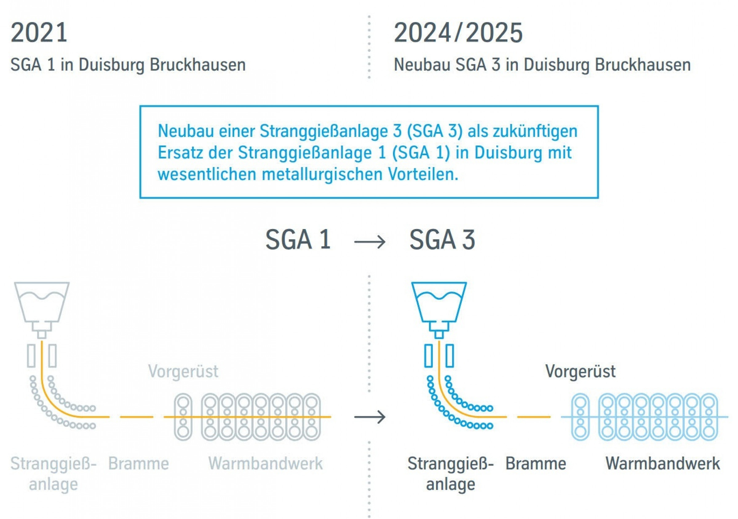 - Neubau einer weiteren Stranggießanlage, ebenfalls in Duisburg und