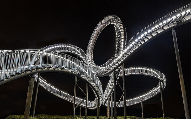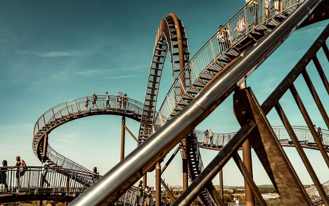 Bis auf den Looping haben die Besucher die Möglichkeit die 220 m lange Gesamtstrecke mit ihren 349 Stufen zu begehen. In einer Höhe von 13 m hat man einen weiten Blick auf die industrielle Kulturlandschaft des westlichen Ruhrgebiets. Aus der Ferne betrachtet entstehen aufgrund der Form eher Assoziationen mit einer Achterbahn und Beschleunigung. Im Gegensatz dazu soll das Erlebnis stehen, die Skulptur zu Fuß zu erklimmen, dabei die umgebende Landschaft aus immer wieder unterschiedlichen Perspektiven wahrzunehmen und dabei zu entschleunigen.