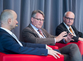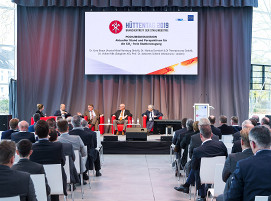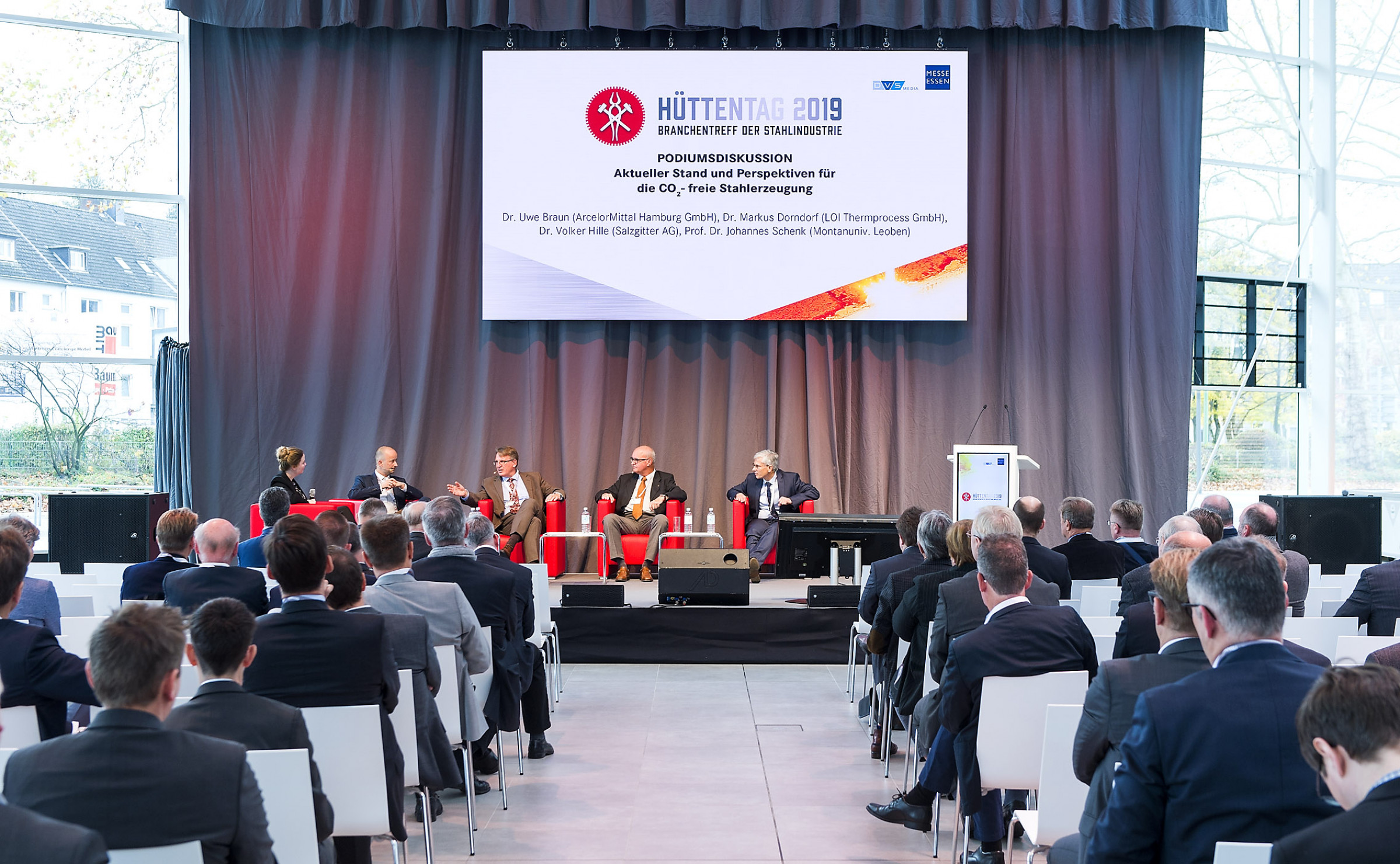 Ein wichtiger Schwerpunkt war in diesem Jahr die CO2-freie Stahlerzeugung. Die Thematik wurde in zwei Keynote-Vorträgen vorgestellt und anschließend von vier Experten auf dem Podium ausführlich diskutiert. Den sehr präzisen Fragen von Moderatorin Nadine Pungs stellten sich Dr. Volker Hille (Salzgitter AG), Dr. Uwe Braun (ArcelorMittal Bremen), Dr. Axel Sormann (K1-MET) und Dr. Markus Dorndorf (LOI Thermprocess GmbH) und beleuchteten die verschiedenen Aspekte und die Voraussetzungen für eine erfolgreiche Umsetzung der Forderungen an die Stahlindustrie zur Erfüllung der politischen Vorgaben. Auch andere aktuelle Themen wie die Digitalisierung, die Additive Fertigung sowie der Einsatz von Künstlicher Intelligenz zur Prozessoptimierung wurden auf dem HÜTTENTAG 2019 in 24 Fachvorträgen dem interessierten Publikum vorgestellt.