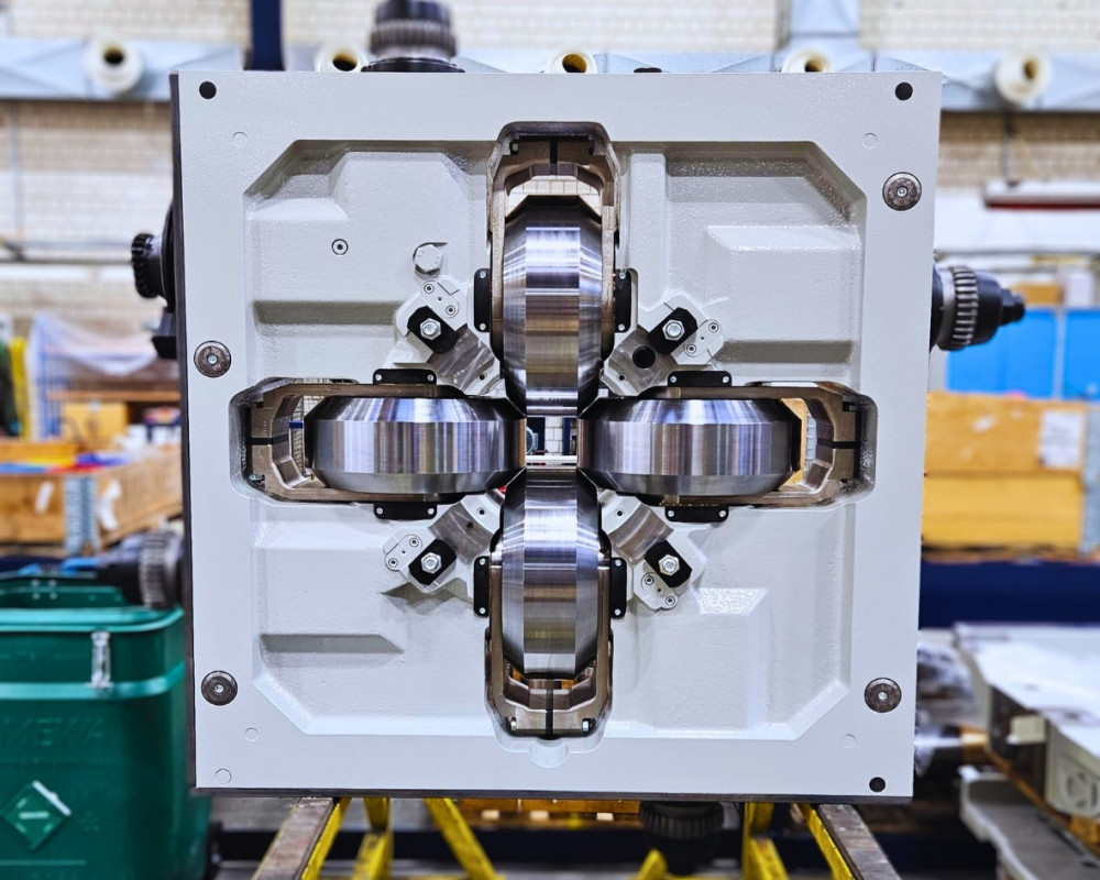 Diese vier Walzen in den Gerüsten werden jeweils einzeln angetrieben. Basierend auf der bewährten Konstruktion der 3-Walzengerüste von Kocks, verfügen sie über die Kaliberanstellung und erlauben schnelle Walzenwechsel für eine hohe Flexibilität in der Produktionsplanung. Der Lieferumfang umfasste hierzu auch die entsprechende Ausrüstung für die Walzenwerkstatt.