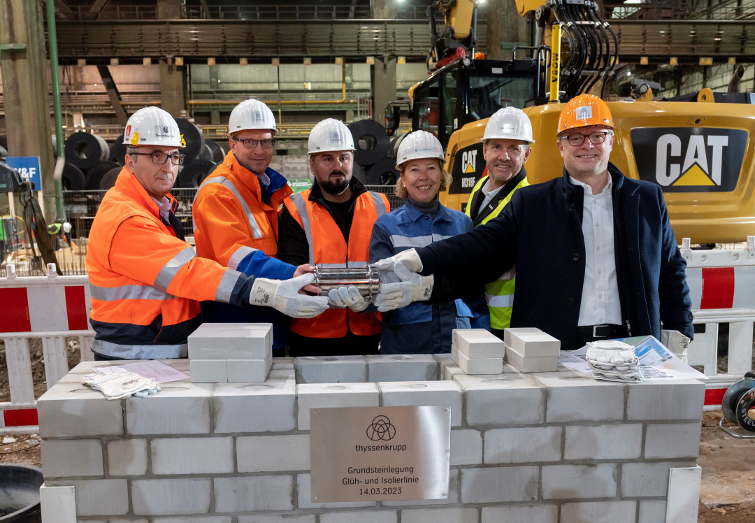 thyssenkrupp Steel setzt die Zukunftsstrategie 20-30 weiter konsequent um: Am Standort Bochum fand am 14. März 2023 die Feier zur Grundsteinlegung der neuen Glüh- und Isolierlinie statt. Mit dem modernen und energieeffizienten Aggregat können noch dünnere Elektrobänder mit besonders homogenen mechanischen und magnetischen Eigenschaften hergestellt werden. Sie sind auf die Anforderungen hocheffizienter Motoren ausgelegt, die vor allem in Elektrofahrzeugen zum Einsatz kommen. Dafür wird die Anlage zukünftig bis zu maximal 218.000 Tonnen pro Jahr nicht kornorientiertes Elektroband herstellen. Die Investitionssumme beträgt rund 150 Millionen Euro. Projektpartner ist der Anlagenbauer SMS group aus Düsseldorf. Die Fertigstellung des Aggregats ist für 2024 geplant.