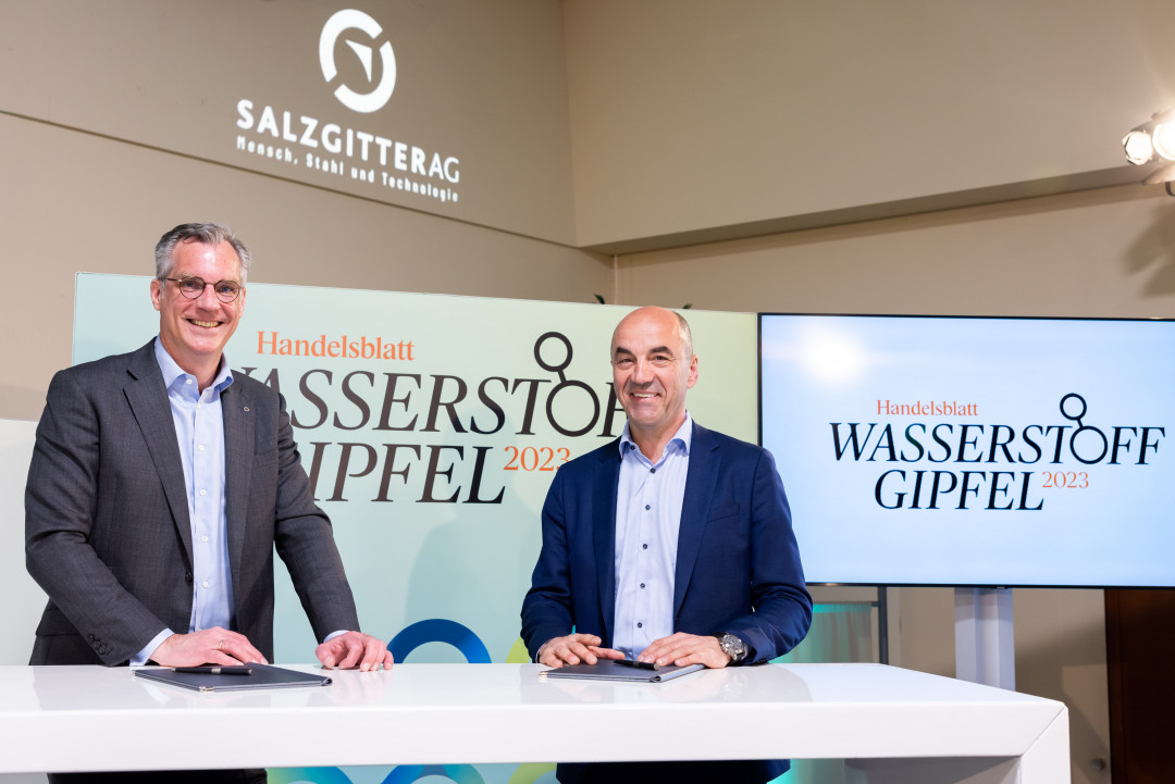 Der Oldenburger Energiedienstleister EWE und der Stahl- und Technologiekonzern Salzgitter AG beabsichtigen, beim Thema Wasserstoff zu kooperieren. Das gaben die Vorstandsvorsitzenden Stefan Dohler (EWE) und Gunnar Groebler (Salzgitter AG) am Donnerstag in Salzgitter bekannt – am Rande des Handelsblatt-Wasserstoffgipfels unterzeichneten sie die entsprechende Absichtserklärung.