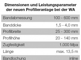 Das Werk hat sich für eine Inline-Bandlochanlage entschieden, mit der das Band vor der Profilierung in einem Produktionsschritt gelocht werden kann. Damit können Profile nun zeit- und kostensparend mit individuellen und komplexen Lochbildern nach Kundenwunsch gefertigt und stückgenau angeliefert werden.