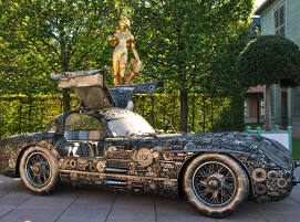 Kunstwerk der besonderen Art: Mercedes 300 SLR aus Altmetallteilen.