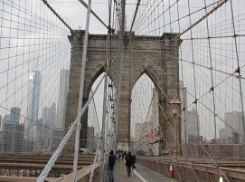 Zur Zeit ihrer Fertigstellung im Jahr 1883 war die Brooklyn Bridge die längste Hängebrücke der Welt