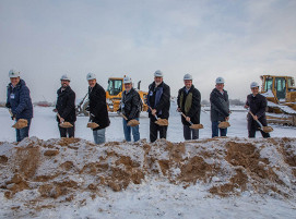 Erster Spatenstich für das neue Benteler-Werk in Wyoming - Auf dem Foto (von links): Patrick Waterman (City Counsil Member, Wyoming MI), Jon Quint (Plant Manager Hagen Dr. Plant, Benteler Automotive Components), Sheldon DeKyger (City Counsil Member, Wyoming MI), Kent Vanderwood (Mayor of Wyoming MI), Bill Norton (Facility Manager Stafford Av. Plant, Benteler Automotive Components), Steve Bates (Executive Vice President Americas Cluster North, Benteler Automotive Components), Jason Perry (Director of Manufacturing Engineering US, Benteler Automotive Components), Dr Emerson Galina (President Americas Benteler Automotive Components).