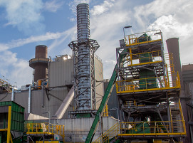 Die sogenannte Torero-Anlage die Holzabfälle in Biokohle für den Einsatz im Hochofen des Stahlwerks in Gent umwandelt