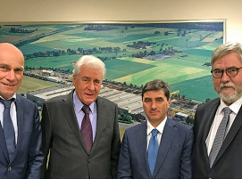 v.l.n.r.: (Die unterzeichnenden Beteiligten) Alberto Lejarreta – Chief Executive Officer der Grupo ARANIA , Gunnar Groebler – Vorstandsvorsitzender Salzgitter AG, Carmelo Bilbao – Executive Vice President der Grupo ARANIA, Ulrich Grethe – Geschäftsbereichsleiter Stahlerzeugung Salzgitter AG, Phillip Meiser – Direktor Vertrieb Salzgitter Flachstahl GmbH