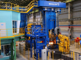 Eine 63/80 MN Hochgeschwindigkeits-Freiformschmiedepresse, vergleichbar mit der 63/71 MN Zweisäulen-Oberflur-Freiformschmiedepresse, die an Jiuli Yongxing geliefert wurde, sorgt für erhöhte Präzision und Produktivität bei den Schmiedeprozessen.