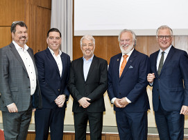 Von links: Nils Voermann, Global Managing Director, Advisory, Digital, Environment, and Technologies, Hatch; Stephane Raymond, Regional Managing Director, Hatch; Peter Weber, Managing Partner (CEO), Küttner; Joe Lombard, Global Managing Director, Metals, Hatch; und Karl Isken, Managing Partner (CFO), Küttner