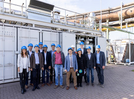 GrInHy2.0 Projektteam vor dem Sunfire Hochtemperatur-Elektrolyseur in Salzgitter