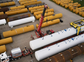 Die Steelwind Nordenham GmbH produziert insgesamt 78 Monopiles für den Windpark Baltic Power in der polnischen Ostsee. Nun fanden in Nordenham die ersten Verladungen stat...